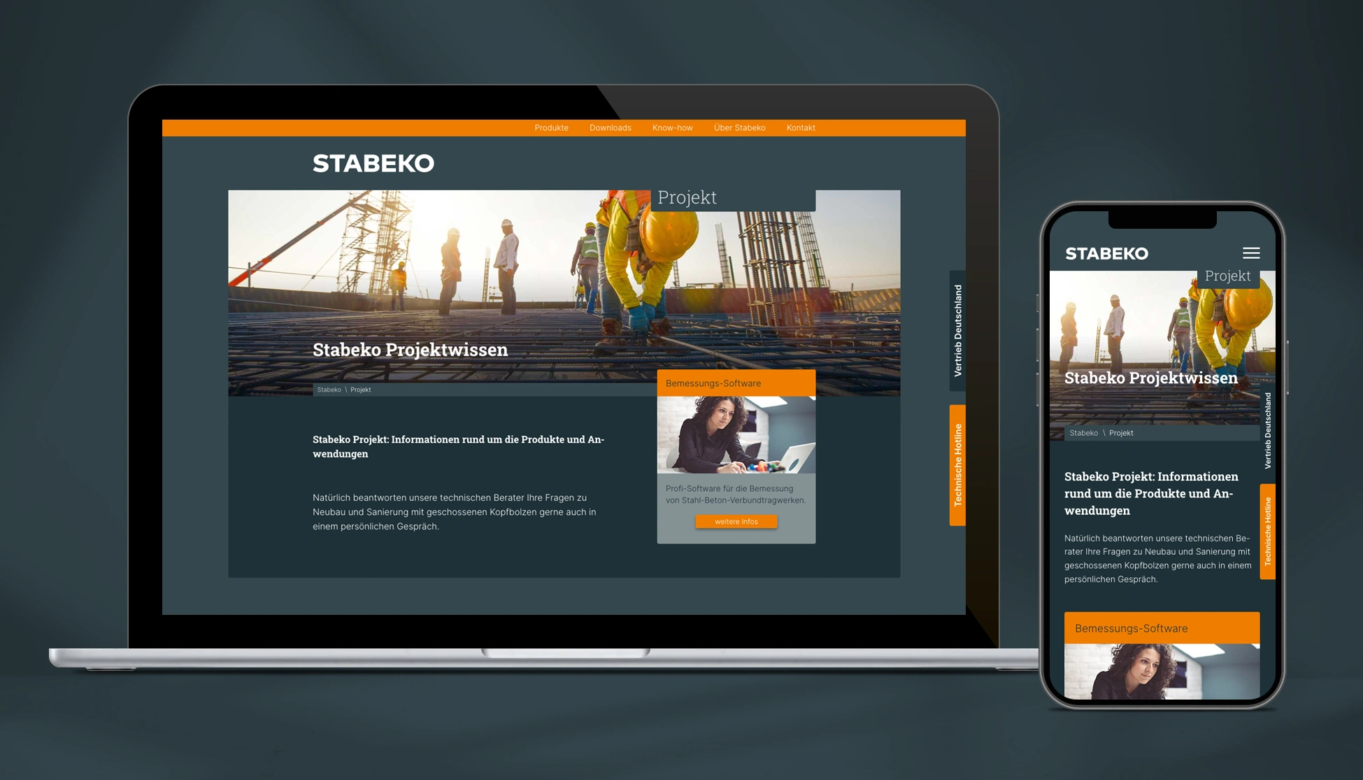 Stabeko ist eine neue Marke im Bereich der Baunebenprodukte. Als einfach anwendbarer Ersatz für Schweißbolzen erschließen die Produkte TFuse und VFuse Anwendergruppen, wie Betonbauer oder Maurer, die zuvor keine Möglichkeit hatten, Verbundbau-Lösungen anzubieten. Mit der Entwicklung der Marke und der Produktnamen, einem branchen-adäquaten Corporate Design und einer Online-Marketing-Strategie unterstützt GF Stabeko beim Markteintritt.
